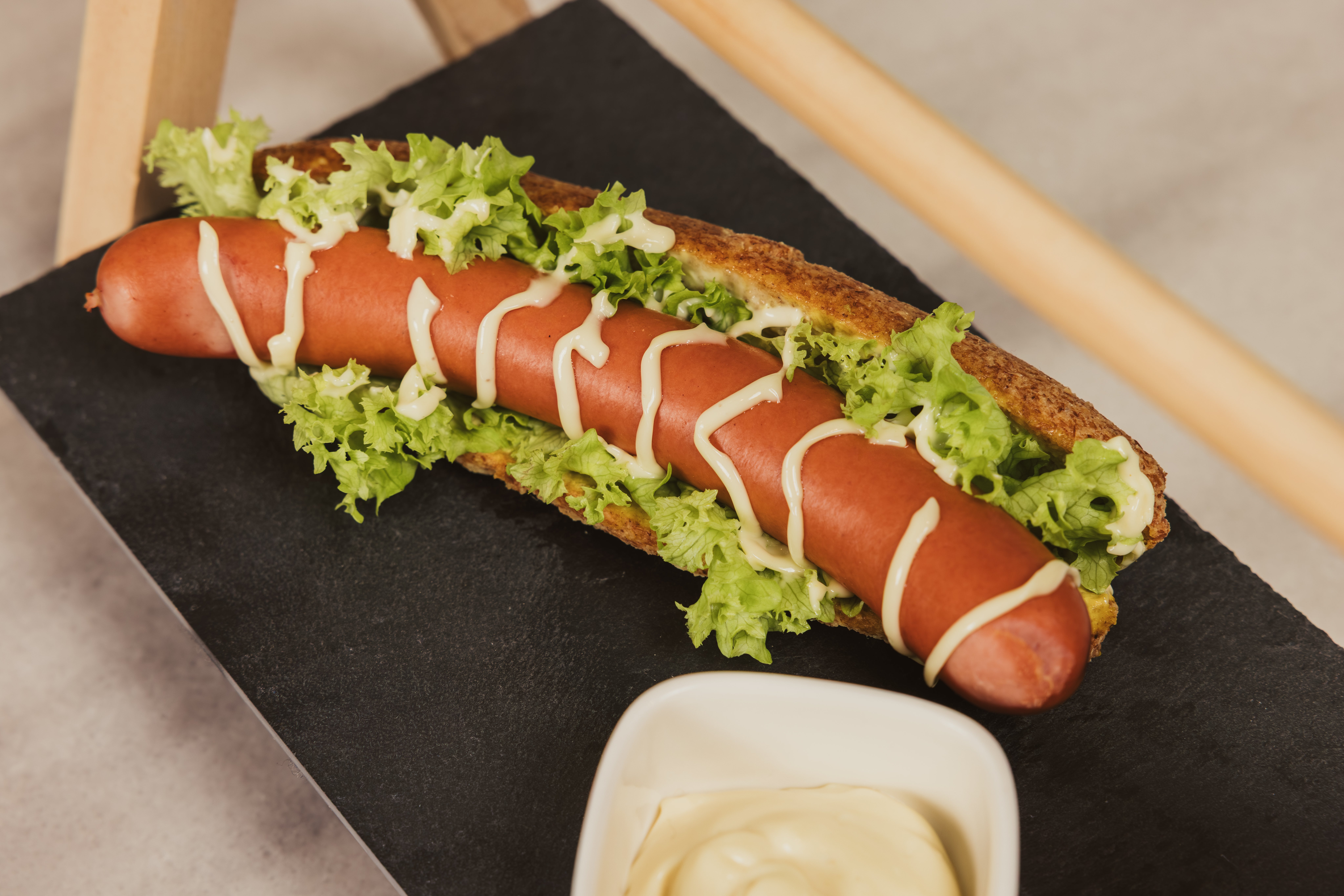 Smeer beide helften met een deel van de mayonaise en voeg mosterd toe.