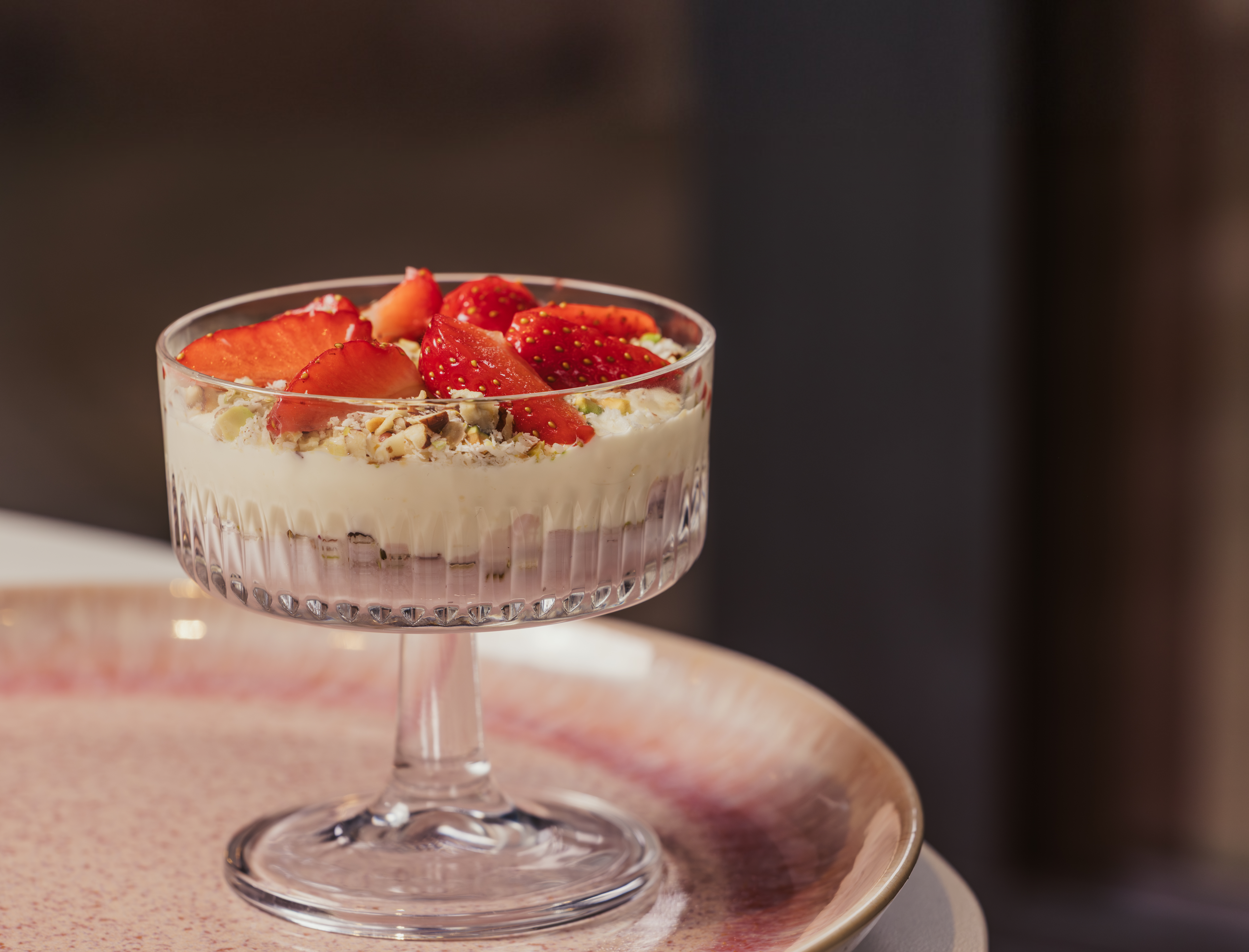 Doe de K.Yo Berry in een ramekin en bestrooi met de helft van het notenmengsel. Bedek vervolgens met het yoghurtmengsel.