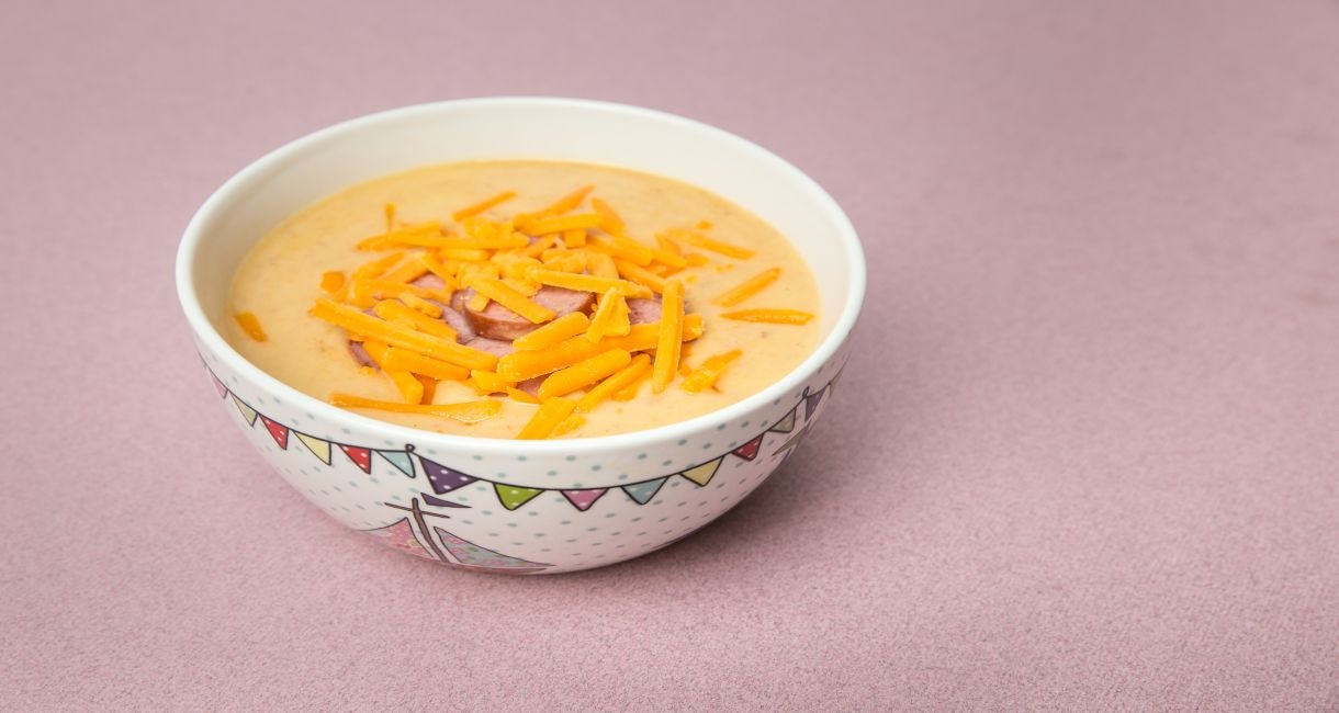 Roer 20g geraspte cheddarkaas door de soep tot het gesmolten is.