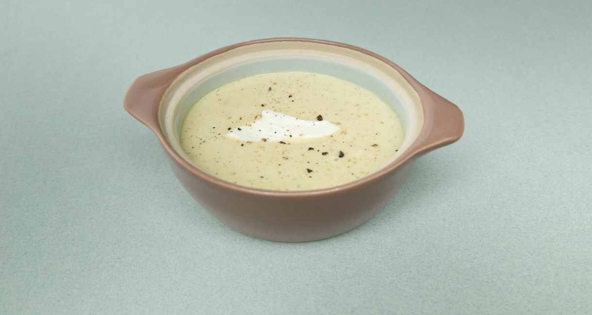 Mix met een staafmixer tot een glad geheel. Giet de soep in een kom, meng deroom door de soep en breng op smaak met zout en peper alvorens te serveren.